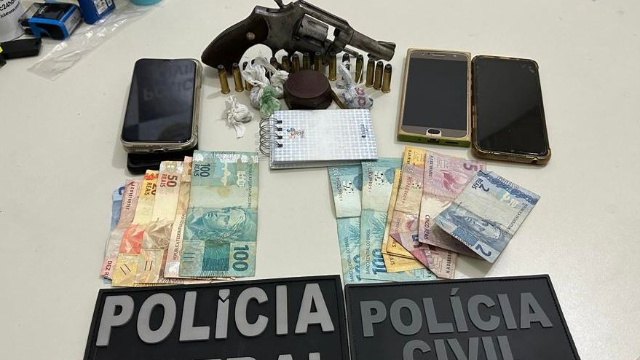 Durante o cumprimento do mandado judicial, em conjunto com a Polícia Civil do Piauí, realizado no endereço do destinatário da correspondência, foram encontrados um revólver calibre 38 e munições, dinheiro em espécie, aparelhos celulares, uma caderneta com a contabilidade do tráfico, além de certa quantidade de entorpecentes, que serão identificados por meio de exame pericial.