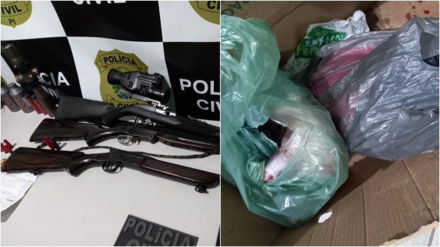 A Polícia Civil do Piauí cumpriu, nesta quarta-feira (02), mandado de busca e apreensão na residência de um homem, de 42 anos, na cidade de Passagem Franca do Piauí. Na ocasião, foram apreendidas três armas de fogo, um cano de arma de fogo, 58 munições de rifle, cartuchos e acessórios para armas com fins de venda e caça de animais silvestres. Foram apreendidos também alguns animais silvestres, sendo três pássaros vivos, um tatu, três cotias e a metade de outra cotia abatida.