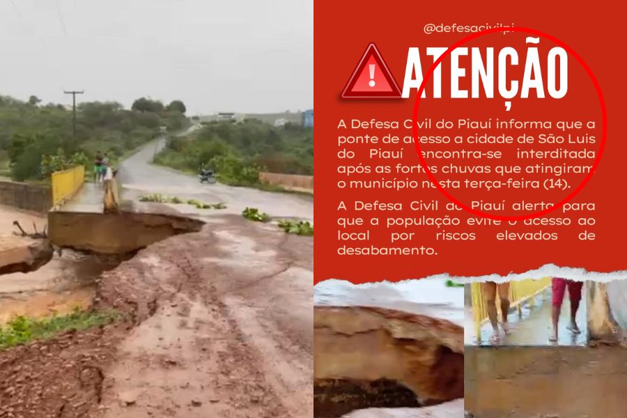 A ponte Francisco de Sousa Sales, que liga São Luís a São João da Canabrava, PI-238, Sul do estado, foi interditada após as fortes chuvas atingirem o município nesta terça-feira (14). O comunicado foi feito pela Defesa Civil do Piauí nesta quarta-feira (15).  O órgão pediu “que a população evite o acesso ao local por riscos elevados de desabamento”.