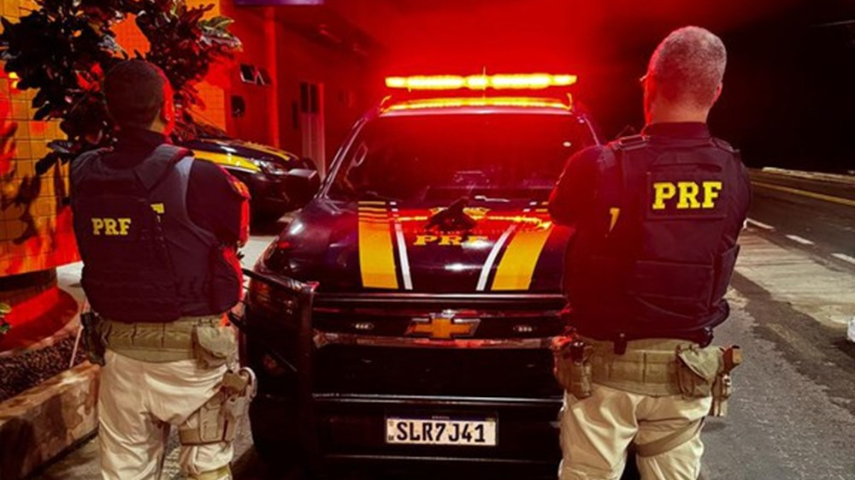 Durante a fiscalização, uma equipe notou um veículo com um adesivo irregular no vidro dianteiro e bagagens mal acomodadas no banco traseiro, o que levou à ordem de parada ao condutor.