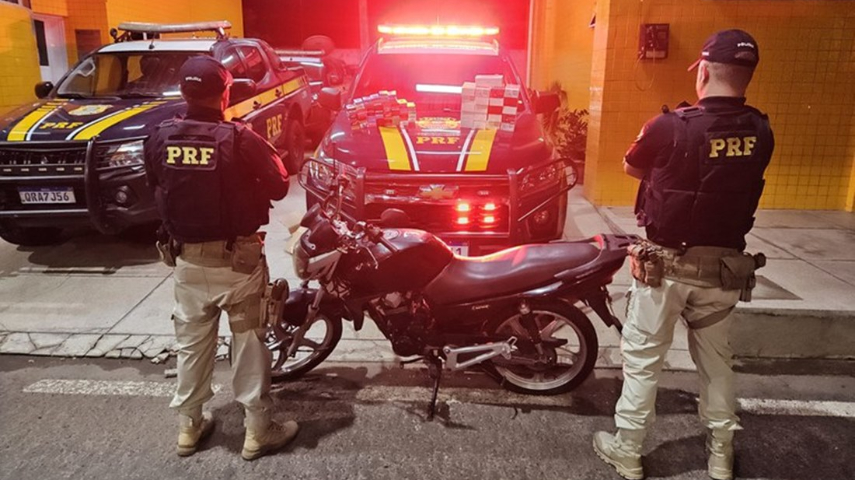 MATERIAIS APREENDIDOS: Além da motocicleta, foram encontrados 62 cigarros eletrônicos ("vape") e 21 celulares sem nota fiscal durante a fiscalização do bagageiro do ônibus. Ao ser questionado sobre a procedência dos itens, o motorista- qualificado como testemunha do caso- afirmou que estava levando as mercadorias como encomenda de São Paulo para Teresina, mas não sabia dizer a quem estariam destinadas.