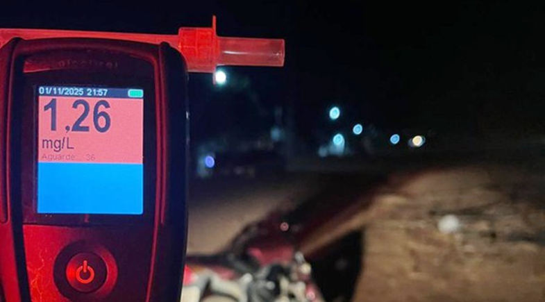 Durante a fiscalização, o condutor realizou o teste de alcoolemia, que apontou 1,26 mg/L de álcool por litro de ar expelido pelos pulmões, o que configura crime. Além disso, o homem não possuía habilitação para conduzir o veículo, o que agravou a situação. Devido ao comportamento agitado e risco à integridade da equipe, o condutor foi encaminhado à Delegacia de Polícia Civil local com uso de algemas, e a motocicleta foi recolhida ao pátio credenciado.