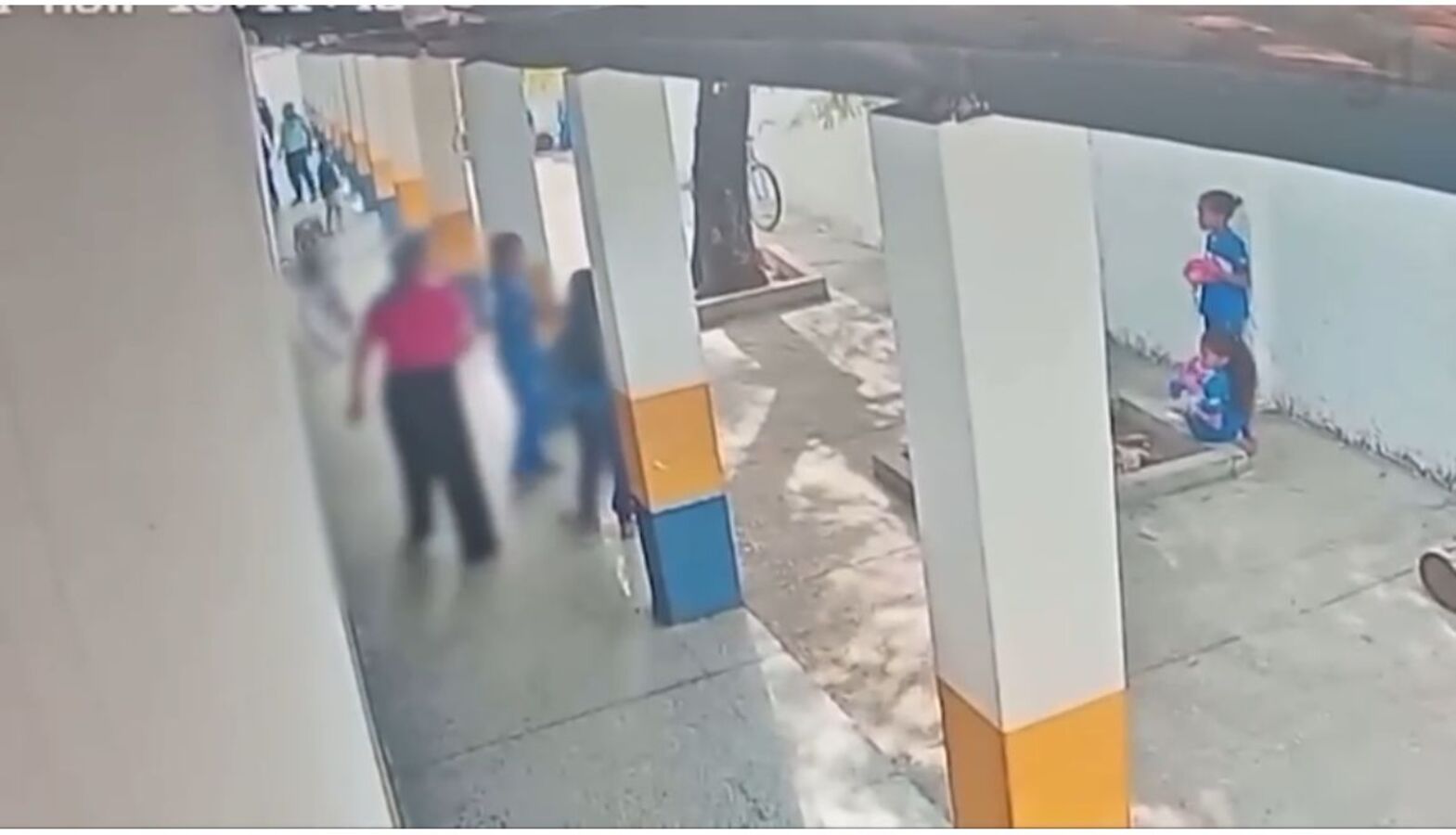 O caso ocorreu na segunda-feira (23) e foi registrado por uma câmera de segurança interna da escola. A criança havia saído para uma aula de reforço em outra sala e, ao retornar para o ambiente em que a professora estava, foi impedida com um empurrão.