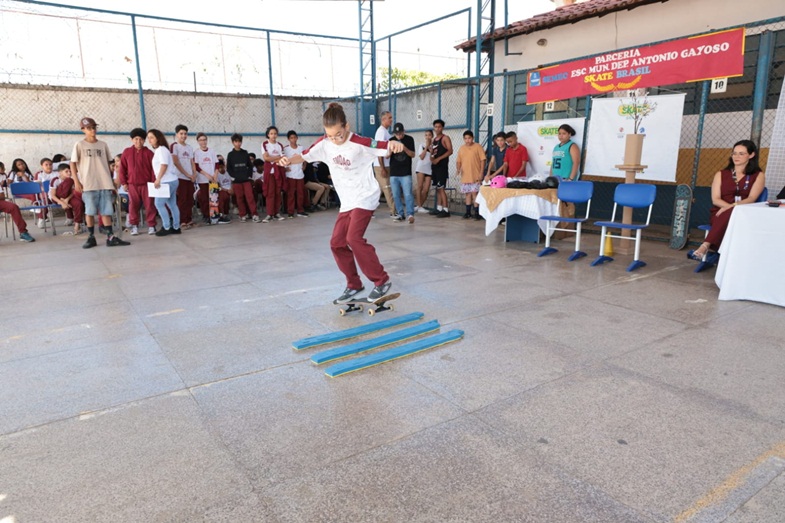 Teresina passou a fazer parte oficialmente da rede de polos do Projeto Escola Skate Brasil, iniciativa que oferece aulas gratuitas de skate para crianças e adolescentes da rede pública, no contraturno escolar. O lançamento do polo local aconteceu nesta quinta-feira (14), na Escola Municipal Deputado Antonio Gayoso, no bairro São Joaquim, zona Norte da cidade, reunindo alunos, professores, familiares e representantes das instituições parceiras.