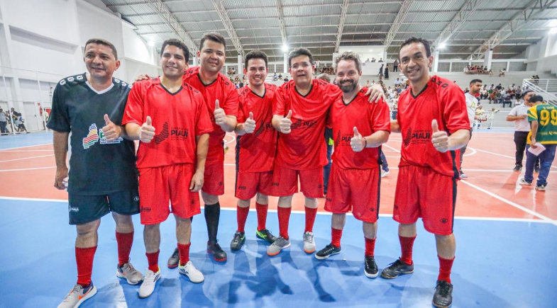 Com a camisa rubro jogaram o governador Rafael Fonteles; os secretários da Comunicação, Marcelo Noleto; da Segurança, Chico Lucas; de Governo, Ivanovick Feitosa; e os ex-jogadores Marcelinho Carioca, Túlio Maravilha e Manoel Tobias.