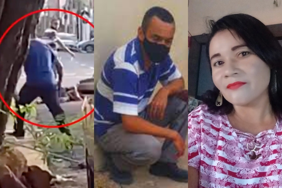 Montagem mostra o flagrante do crime, o acusado e a vítima. Em 2022, o eletricista Ezequiel Rodrigues de Araújo matou com 19 facadas a ex-esposa Valdirene Torquato da Silva, em plena via pública, no bairro Ilhotas, zona Sul de Teresina | FOTO: Reprodução