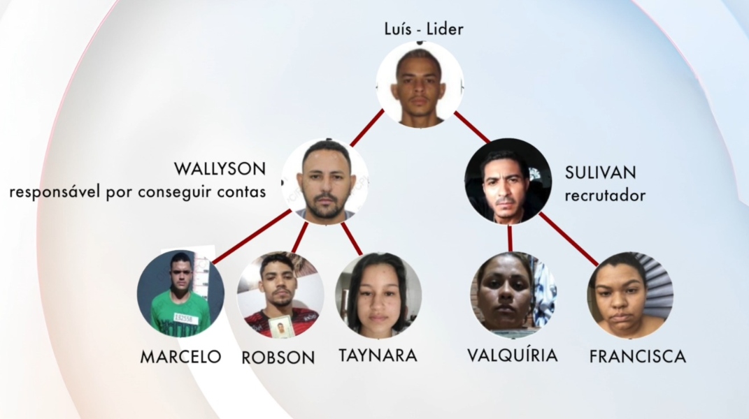 As funções dentro do grupo eram divididas em cinco: liderança, recrutador de contas bancárias, recrutador de participantes, movimentadoras de valores e pessoas usadas como laranjas.