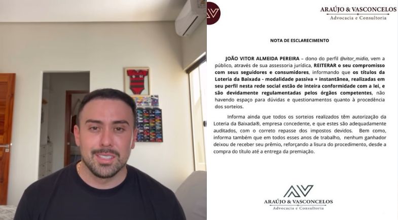 Em nota, os advogados do investigado afirmaram que os sorteios realizados têm autorização da “Loteria da Baixada”, empresa concedente, estando em conformidade com a lei, e que nenhum ganhador deixou de receber algum prêmio.