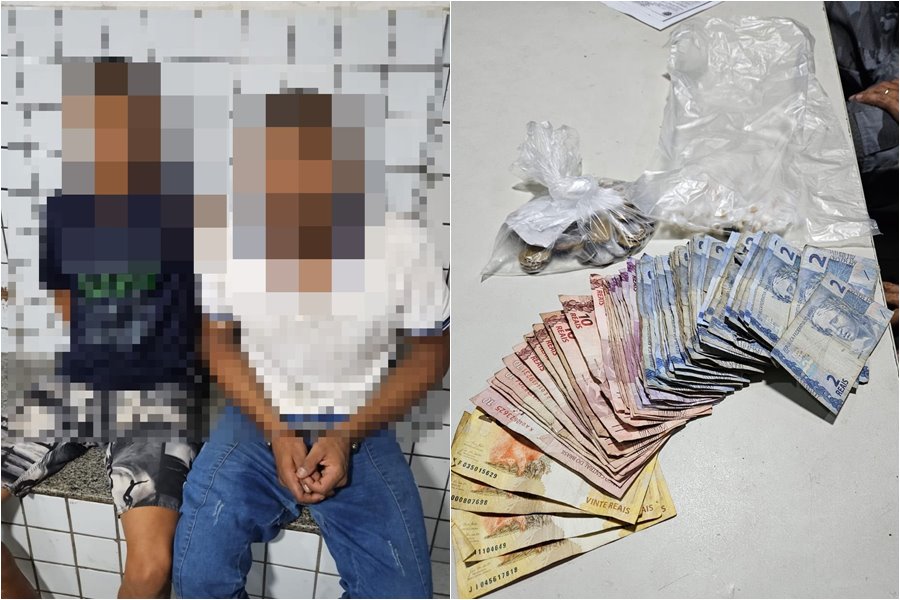 Diante disso, os presos, identificado pelas iniciais de iniciais J.M.B.S e L.V.S e já conhecidos da polícia, foram conduzidos à Central de Flagrantes para os procedimentos cabíveis, onde os mesmos foram autuados em flagrante por tráfico de drogas.