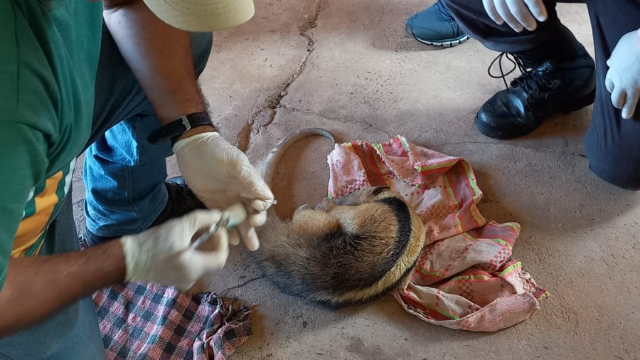 Um tamanduá da espécie mirim foi resgatado ferido, possivelmente por golpes de arma branca/faca. A ação foi realizada pela Equipe de Resgate Voluntário do GAV no final da tarde da última segunda-feira (13) na cidade de Barras, no norte do estado do Piauí.