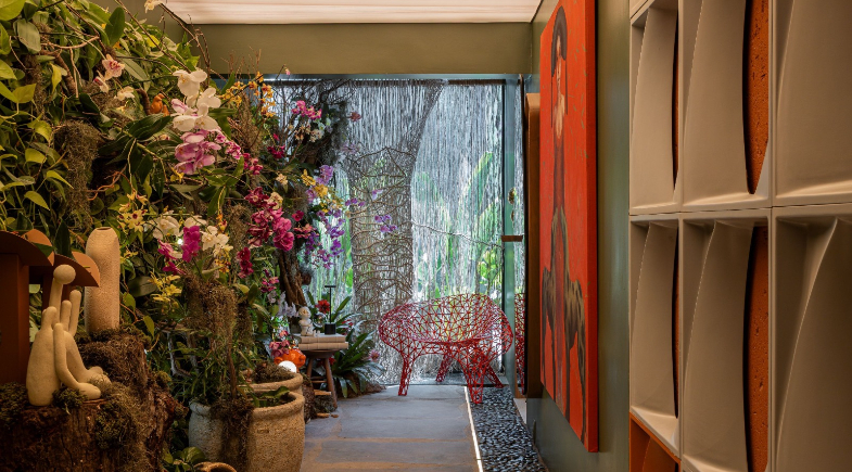 Entre as possibilidades do público de imergir graciosamente nos elementos da natureza que imperam nesta edição, o ambiente “Jardim Penteado”, assinado por Mais Design Interiores, é a manifestação de um orquidário que mostra ser possível criar um espaço de encontros e tranquilidade em meio à agitação do dia a dia. A ideia foi a de resgatar os antigos jardins de inverno e trazer uma nova roupagem.
