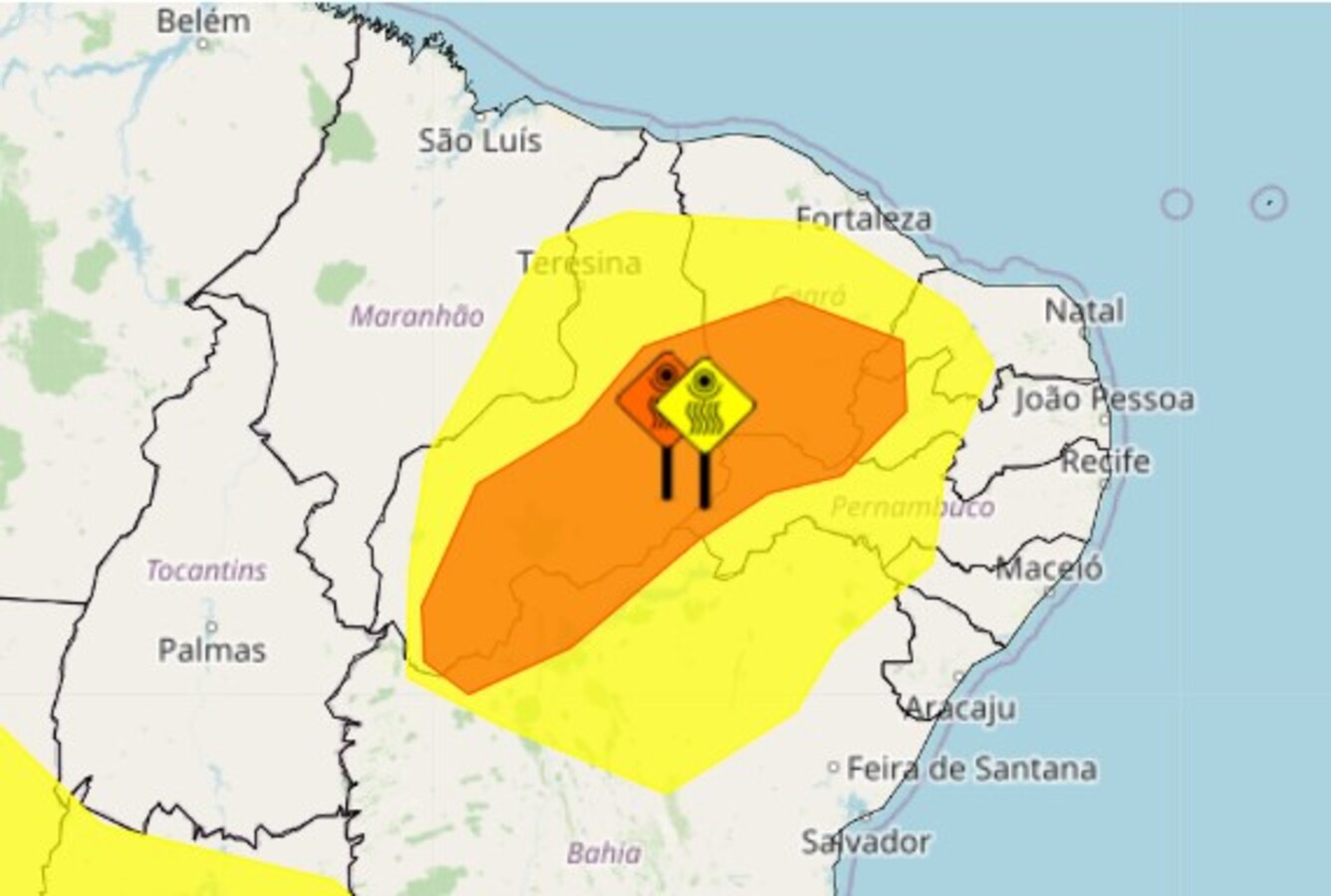 O Instituto Nacional de Meteorologia (Inmet) emitiu, na manhã desta terça-feira (29), dois alertas de baixa umidade e temperaturas acima do normal para mais de 100 municípios do Piauí. Os avisos se estendem até as 19h de hoje. Apenas o extremo Norte e uma faixa de cidades situadas ao Sul escaparam dos alertas.