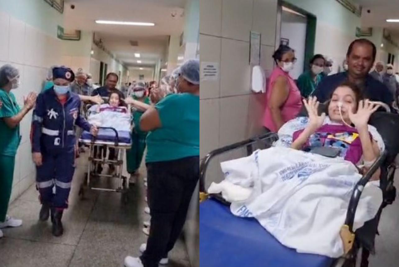 Após 1 ano e 7 meses internada no Hospital de Urgência de Teresina (HUT), para se recuperar de um acidente de trânsito, a jovem M.O.N, de 24 anos, teve alta do hospital sob aplausos da equipe. Ela deu entrada no HUT, em maio de 2023, trazida pelo SAMU após uma colisão entre um caminhão e a moto em que estava.