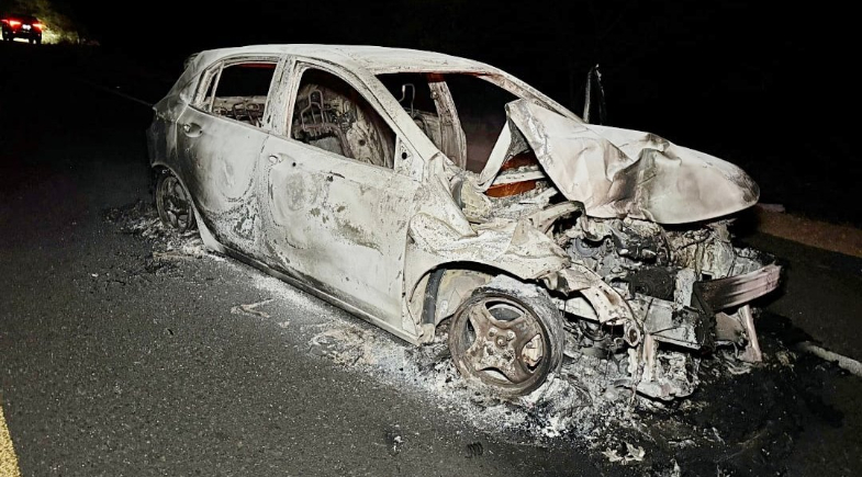 Após a colisão, os dois motoristas pararam os veículos. Instantes depois, o carro da Prefeitura foi tomado pelas chamas e ficou completamente destruído.