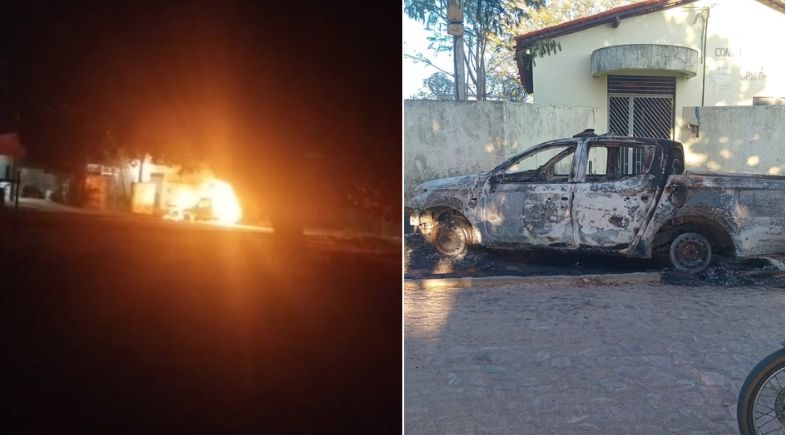 Uma viatura da Polícia Militar pegou fogo na noite desta terça-feira (22), por volta das 23h, em frente ao Grupamento da PM no município de São João da Serra, no interior do Piauí.