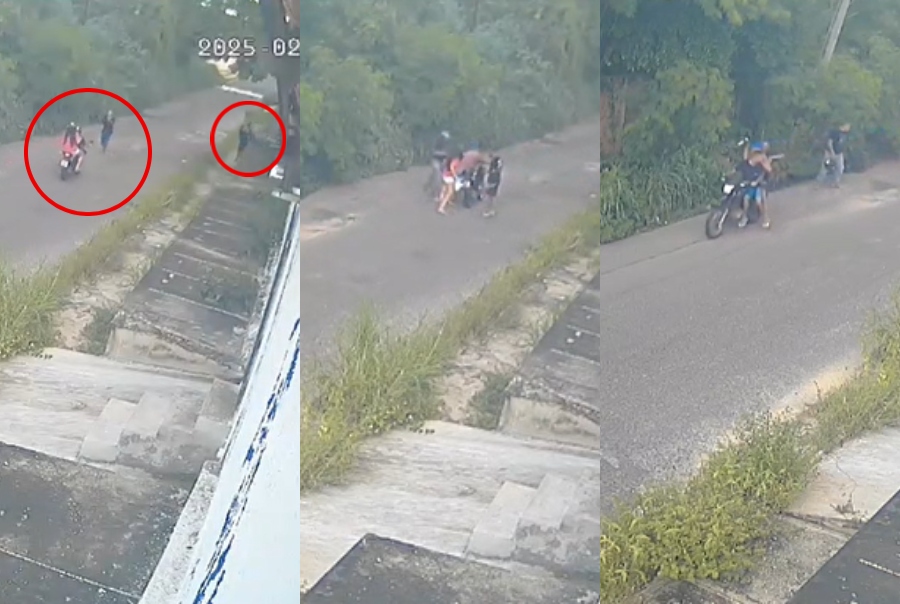 Na tarde deste domingo (23), um casal foi surpreendido por três assaltantes, foi rendido e teve a motocicleta levada no bairro Uruguai, zona Leste de Teresina. Câmeras de monitoramento registraram a ação. Um dos suspeitos saiu de um matagal.