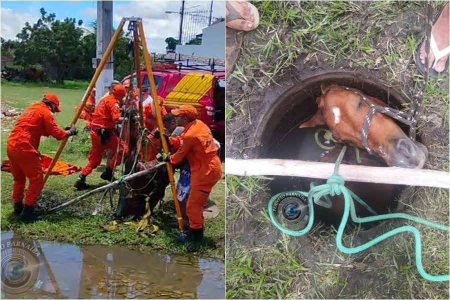 Na manhã deste sábado (15), o Corpo de Bombeiros de Parnaíba realizou um resgate inusitado. Um cavalo caiu dentro de um bueiro sem tampa, localizado na Rua Regeneração, no bairro São José, e ficou preso por mais de duas horas.