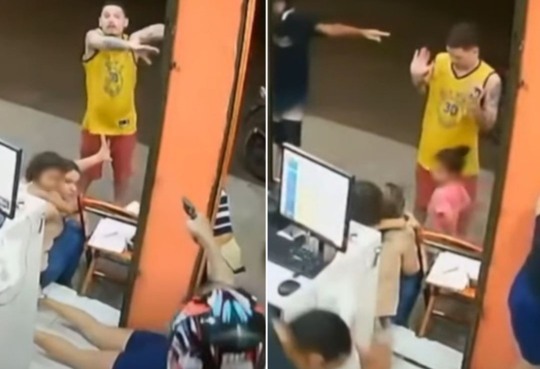 Dois homens, um deles com um arma de fogo em punho, chegaram ao local em uma motocicleta e anunciaram o assalto. Imagens de uma câmera de segurança mostram que, no momento da ação, havia clientes e funcionários na área externa da hamburgueria, incluindo duas crianças.