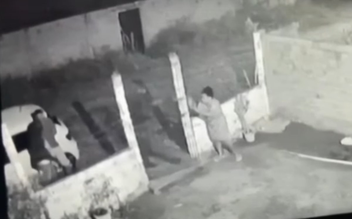 Uma câmera de segurança registrou o momento em que os criminosos abordam a família que estava na área externa da casa. Os criminosos ainda efetuaram disparos de arma de fogo para intimidar as vítimas.