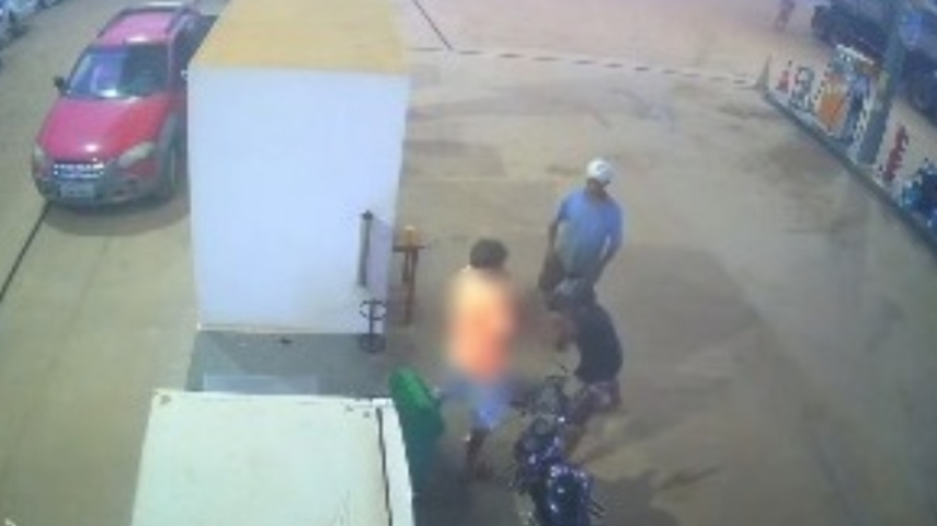 CÂMERA FLAGROU TUDO – As imagens mostraram que o criminoso, a vítima e mais um homem identificado apenas como Carlos estavam conversando em frente a uma das bombas de combustíveis, quando repentinamente Marcinho sacou uma faca da cintura e esfaqueou a vítima no abdômen. Mesmo ferida, a vítima conseguiu fugir de seu algoz, enquanto Carlos conteve o acusado, que depois fugiu em uma motocicleta.