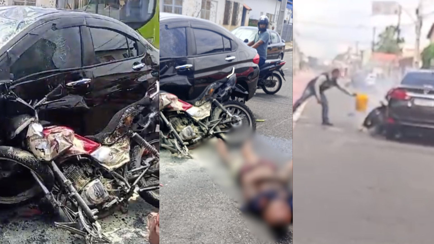 Um homem, ainda não identificado, sofreu queimaduras em partes do corpo após um acidente envolvendo uma moto e um carro, na tarde desta segunda-feira (25), na avenida Rui Barbosa, no bairro Pirajá, zona Norte de Teresina. Vídeos feitos por testemunhas mostram que a motocicleta, na qual o indivíduo estava, ficou completamente destruída.