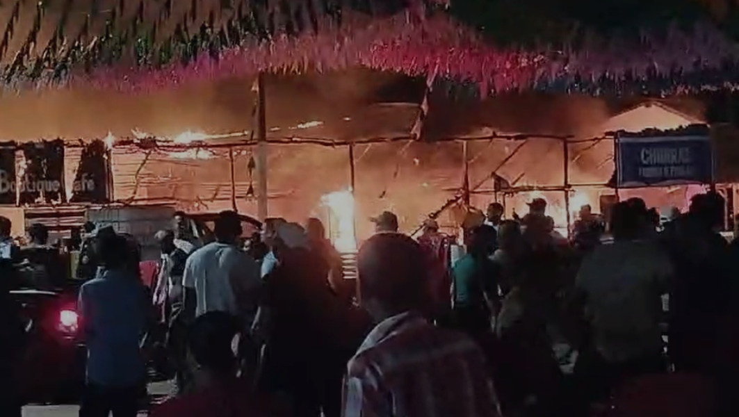 A suspeita é que as chamas tiveram início após a tradicional queima de fogos no evento, que durou cerca de 7 minutos. As faíscas teriam caído em cima da cobertura de palha de coco que cobria as barracas e, rapidamente, as chamas se alastraram. Pelo menos 11 barracas foram destruídas, na praça de alimentação que haviam 40 barracas.