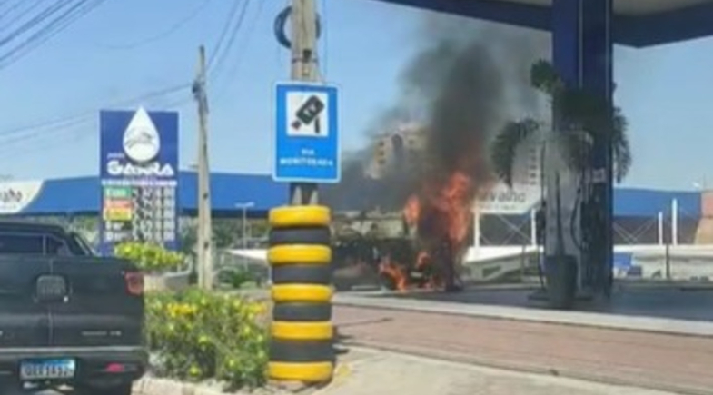 De acordo com testemunhas, as chamas começaram logo após o veículo ser abastecido no local. O motorista conseguiu sair a tempo e não houve feridos.
