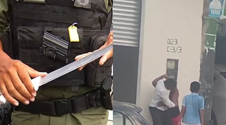 O pastor entrou em contato com a guarnição pedindo apoio, relatou que estava sendo agredido, ele e a esposa dele já tinham sido agredidos e estavam com lesões, e de mediato nos deslocamos para o local e lá tinha uma senhora, o pastor apresentou essa faca e estava tudo quebrado la, com marca de sangue, e a esposa do pastor também lesionada, disse o comandante Sousa Marques, do 22º Batalhão da Polícia Militar.