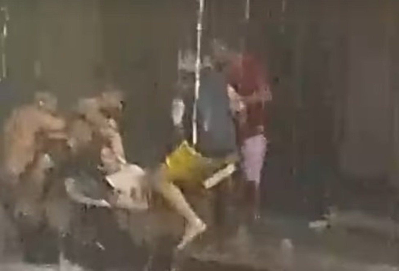 Imagens registradas no local mostram o momento em que a mulher é retirada da água e levada para a calçada por moradores. A via estava completamente alagada, e a força da enxurrada dificultava a locomoção.