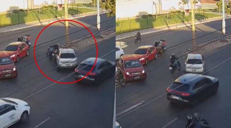 As imagens mostram que a avenida estava movimentada, e a motociclista trafegava pelo corredor dos ônibus — agora permitido para motos — quando um carro tentou sair da via para acessar o retorno, provocando a colisão. Com o impacto, a mulher foi arremessada ao chão.