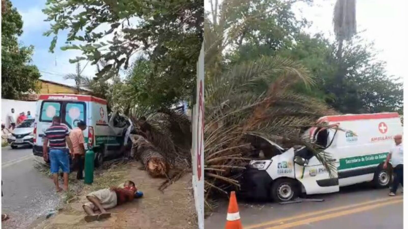 Três pessoas ficaram feridas após uma palmeira localizada às margens da BR-343, em Campo Maior, cair sobre uma ambulância na tarde desta sexta-feira (3).