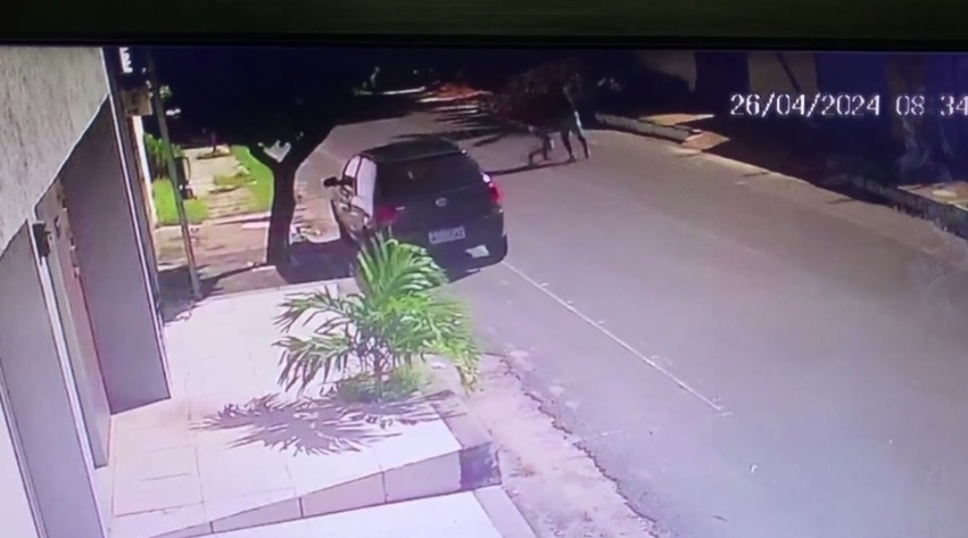 O QUE AS IMAGENS MOSTRAM - De acordo com o vídeo obtido pelo MeioNews.com, os dois criminosos estavam em uma motocicleta Honda Fan de cor preta, quando abordaram o policial, que reagiu e travou luta corporal com um dos assaltantes. Nesse momento, o piloto do veículo se distanciou do local mas acabou retornando para dar fuga ao comparsa.