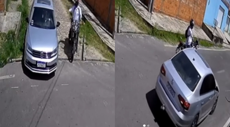 Uma nova estratégia tem sido usada por criminosos para tentar assaltar motoristas em Teresina. Imagens de uma câmera de segurança, registradas na zona Leste da capital, mostram o momento em que um motoqueiro armado se aproxima de um carro de passeio e informa ao condutor que um dos pneus está vazio — tudo para tentar rendê-lo.