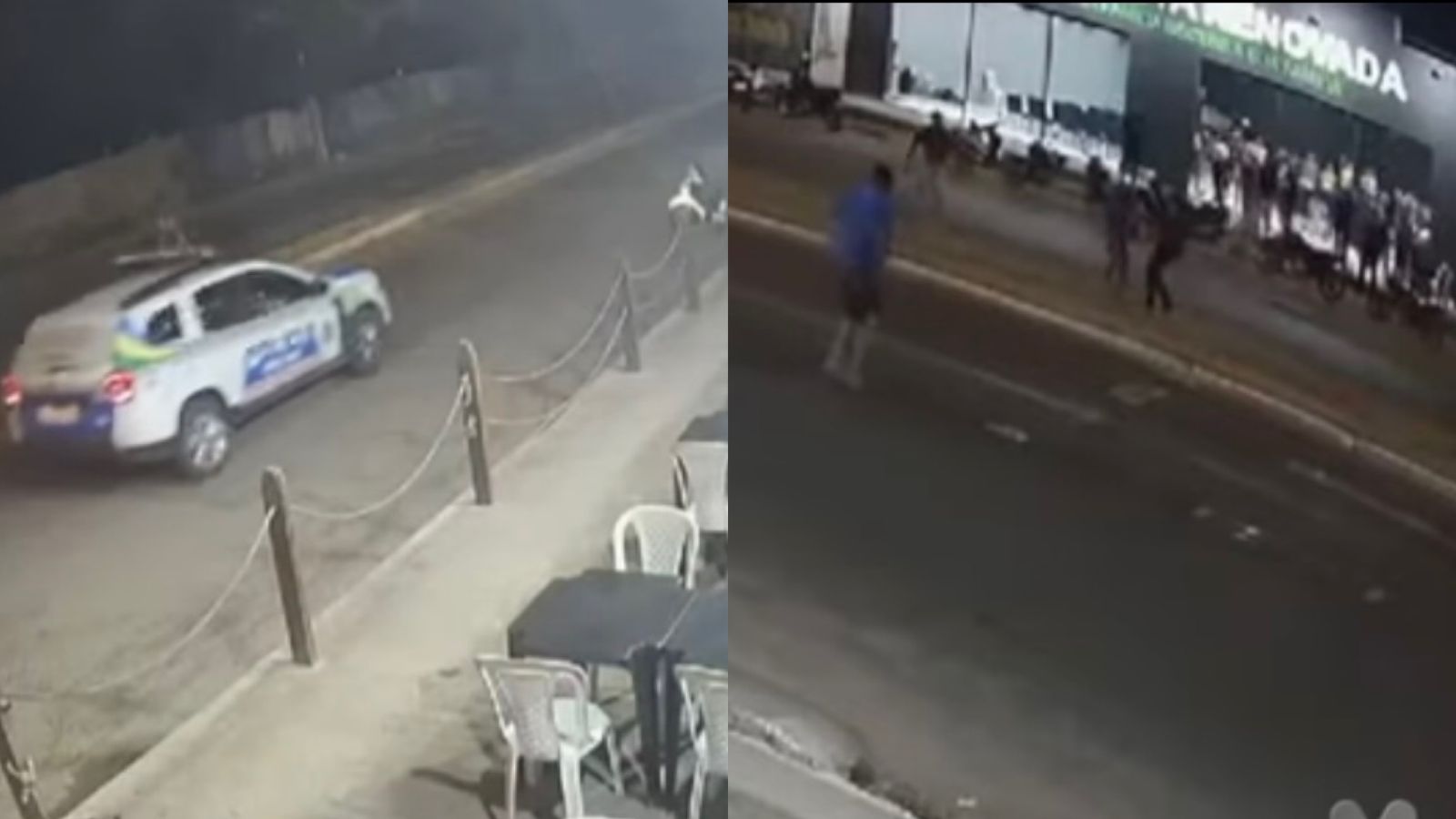 Os policias indicam que houve uma suposta tentativa de assalto a uma pizzaria na região. Nas imagens, obtidas com exclusividade pelo repórter Ivan Lima, é possível ver um homem se distanciando de uma motocicleta ao perceber a aproximação de uma viatura da Polícia Militar. A situação ocorre na calçada do estabelecimento.