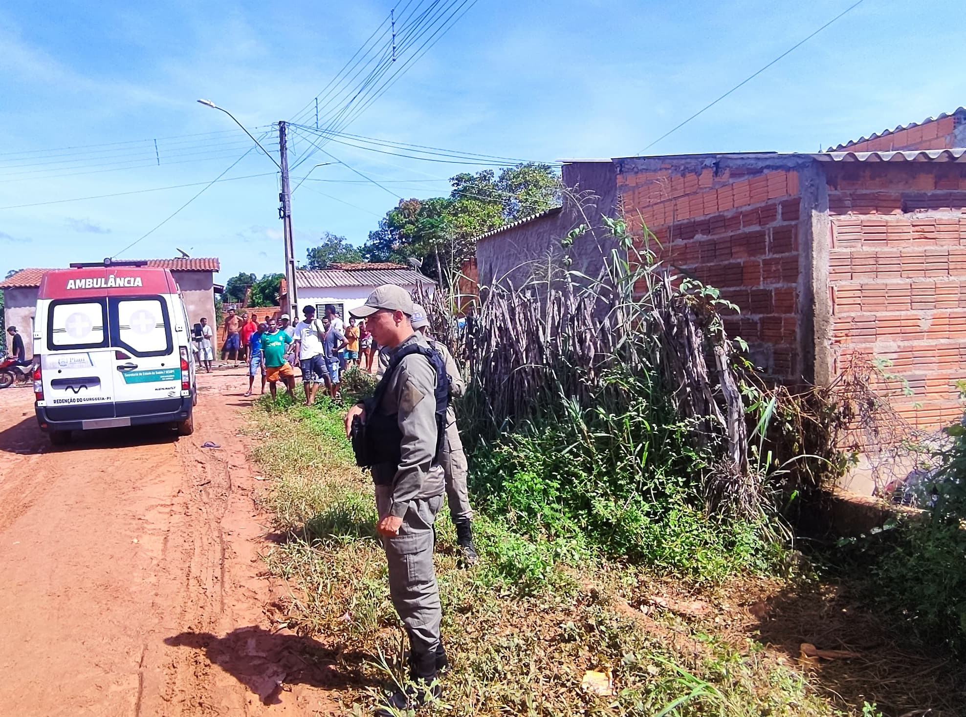 Diante dos fatos a equipe se deslocou até o local, confirmando a veracidade dos fatos. A ambulância do município chegou e confirmou o óbito no local, diante disso, isolamos o local e estamos aguardando até o momento a perícia da polícia civil [...] A vítima de tentativa de homicídio segundo informações da família está no hospital de Redenção com disparo de arma de fogo no braço, sem risco de morte, consta no relatório da PM