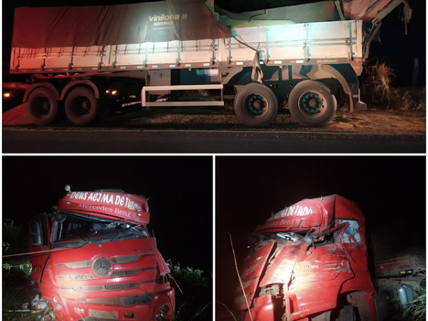 O acidente envolveu um caminhão Mercedes Benz/Actros, de cor vermelha, com placas do município de Araguaina/TO; e um veículo Scania/R, de cor branca, com placas também de Araguaina/TO.