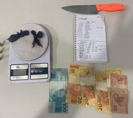 Na casa de Marco Maciel, os policiais do Greco apreenderam drogas, uma balança de precisão, uma faca e uma motocicleta roubada com placa clonada.