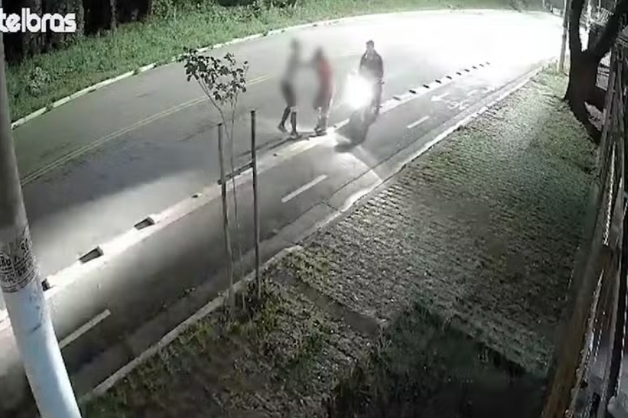 Depois de quase 1 minuto de agressão, os suspeitos desistiram e fugiram de moto.