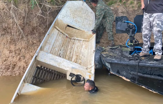 O local foi indicado por Jeferson da Silva Lima, o “Pelado da Dinha”, preso no sábado (18). Ele é um dos oito suspeitos de ter assassinado Bruno e Dom -- três deles já foram presos durante as investigações sobre o caso. De acordo com a polícia, a lancha foi localizada a cerca de 20 metros de profundidade, emborcada com seis sacos de areia para dificultar a flutuação, a uma distância de 30 metros da margem direita do rio.