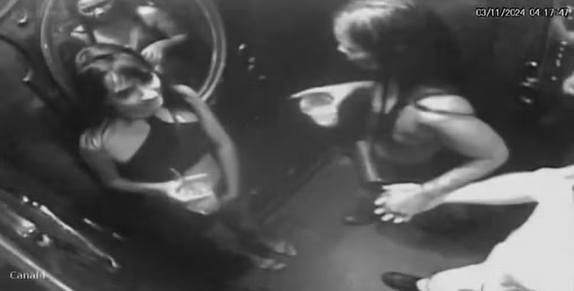 Imagens de câmeras de segurança flagraram o momento que os homens e as mulheres chegaram no apartamento, por volta das 4h da madrugada de domingo (3).