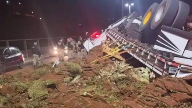 Na noite deste domingo (25), um caminhão que carregava mais de 1 tonelada de maconha tombou em frente a um Batalhão de Polícia Militar(PM). O fato ocorreu na Avenida Presidente Juscelino Kubitschek, na cidade de Juiz de Fora, Minas Gerais.