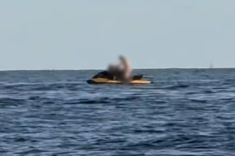 O influenciador, que estava em outra moto aquática, se surpreendeu com a cena e comentou de forma descontraída enquanto gravava: "Olha o bichão, ripando a minazinha em alto-mar. Que coisa, mano! Eita, p**, viu? Tá vendo o que acontece numa quinta-feira enquanto você tá trabalhando?".