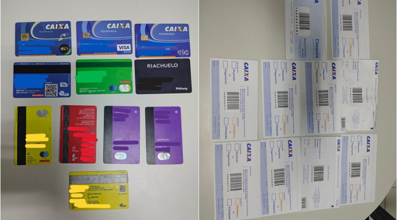 Além do equipamento, foram apreendidos diversos cartões, boletos e documentos bancários, 14 envelopes de depósito da CEF, aparelhos celulares e dinheiro em espécie.