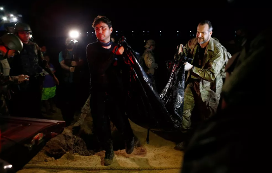 De acordo com o delegado da Polícia Civil, Guilherme Torres, as equipes percorreram o rio por cerca de 1h40 e depois caminharam mais 25 minutos em uma área de mata de difícil acesso até onde os corpos tinham sido enterrados.