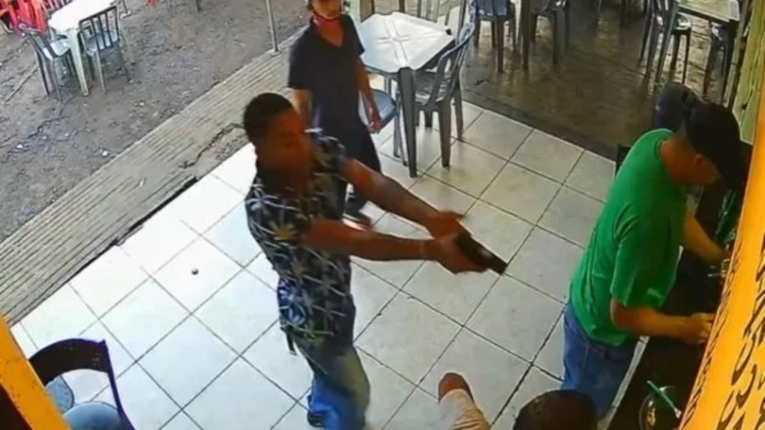 Após o assalto, o cliente levanta as mãos em sinal de não resistência e deixa o estabelecimento. Enquanto isso, os demais clientes permanecem sentados em suas mesas, consumindo bebidas e conversando. Os criminosos deixam o local sem serem incomodados. O caso foi reportado à 24ª Delegacia de Polícia (Ceilândia).