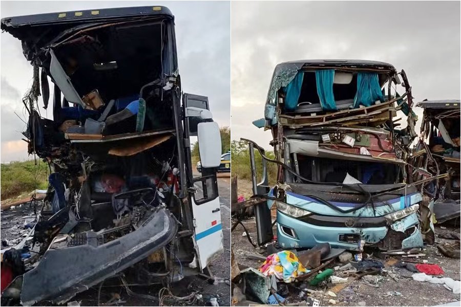 Os dois ônibus de turismo retornavam de Caruaru, em Pernambuco, rumo ao sul da Bahia. A carreta, que estava parada no acostamento desde segunda-feira (3), foi deixada no local após pegar fogo, segundo a PRF.
