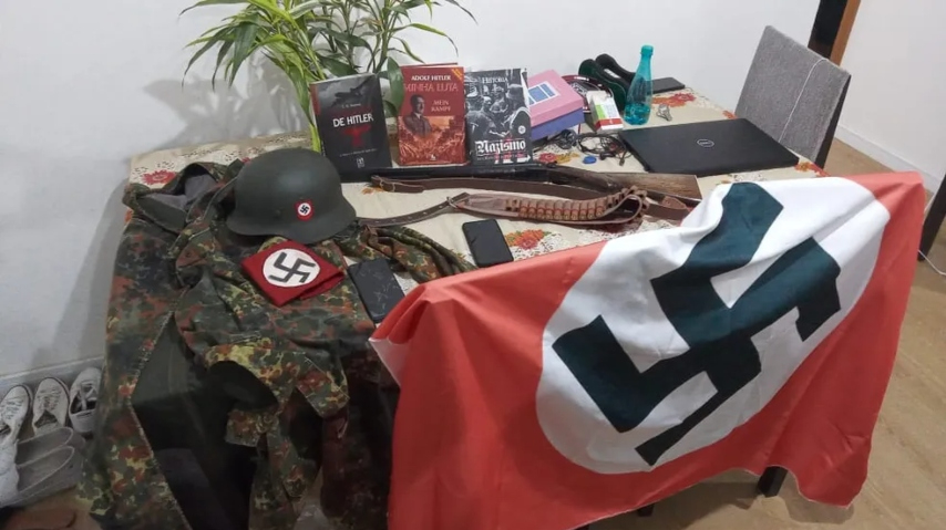 Investigação: Em 2022, homens foram presos em um encontro neonazista. Eles foram encontrados com materiais nazistas em São Pedro de Alcântara. Em outubro, outros suspeitos foram presos, incluindo estudantes da UFSC. Em março de 2023, um professor foi indiciado por elogiar Hitler.