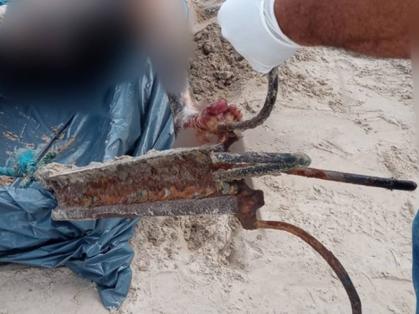 O corpo foi encontrado por pessoas que caminhavam pela praia e acionaram o Corpo de Bombeiros. Havia uma corda amarrada em uma das pernas e com uma âncora na ponta.