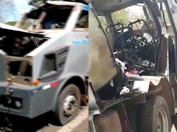 O carro-forte ficou completamente destruído. A Polícia Rodoviária Federal (PRF) foi acionada após a ação. Ninguém ficou ferido.