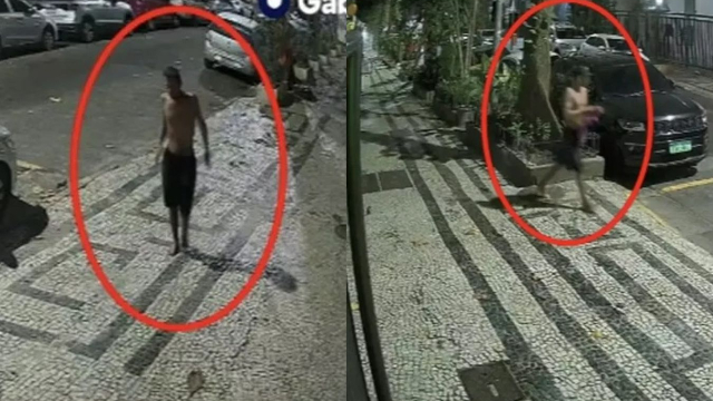 Câmeras de segurança registraram o momento em que os dois suspeitos de matarem com vários golpes de faca Gabriel Mongenot Santana Milhomem Santos, durante um assalto no Rio de Janeiro, caminham tranquilamente por uma rua do bairro Copacabana, zona Sul da capital fluminense, onde ocorreu o crime.